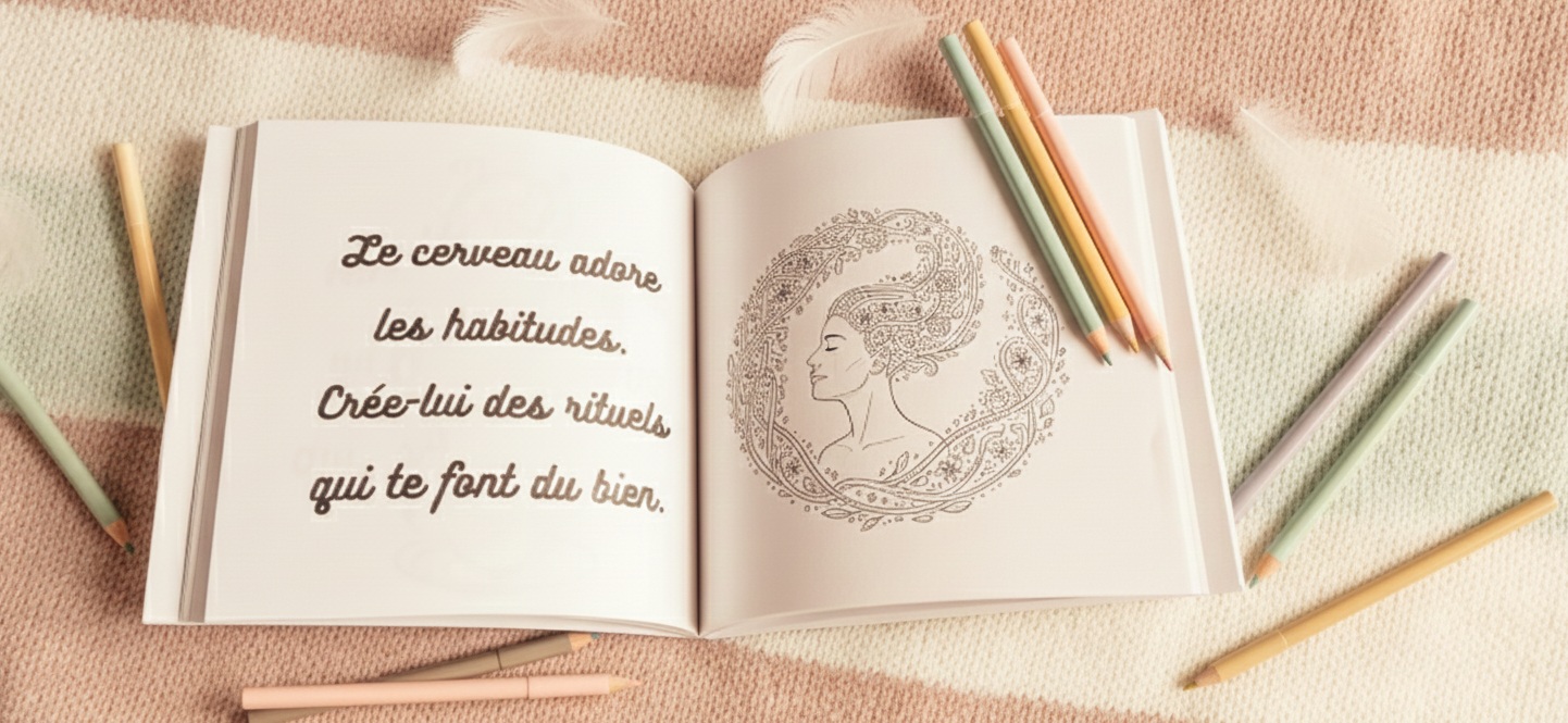Si tu le souhaites, tu peux prolonger l’apaisement en coloriant les traits présents sur chaque page. Pas d’obligation, juste une invitation douce : laisser ta respiration redevenir couleur.